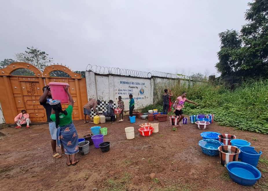 Viele „Umzufamilien“ profitieren nach wie vor von 10.000 l kostenloser Wasserabgabe an zwei Wasserstellen. Unsere „Borehole“ hat das beste Trinkwasser von ganz Bo und kann bedenkenlos getrunken werden.